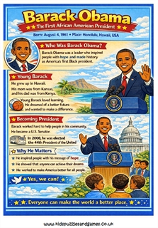 This great Barack Obama fact poster is full colour and a perfect addition when studying Black History month or American Presidents.