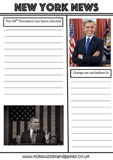 Can you write a newspaper article on Barack Obama? What will it be about? Use this fun sheet to give you some ideas.