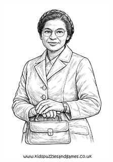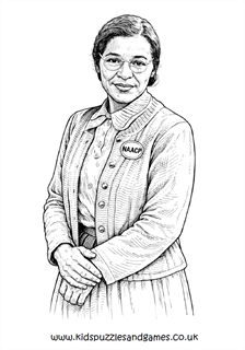 This colouring page features Rosa Parks wearing her NAACP badge (the National Association for the Advancement of Coloured People). She was a dedicated member of the Alabama branch and served as Secretary to the Montgomery branch.